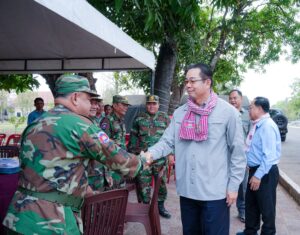 ខេត្តព្រះសីហនុ ៖ រសៀលថ្ងៃទី២៣ ខែកុម្ភៈ ឆ្នាំ២០២៦ លោក ម៉ាង ស៊ីណេត អភិបាល នៃគណៈអភិបាលខេត្តព្រះសីហនុ បានដឹកនាំប្រតិភូខេត្តព្រះសីហនុ ចុះជួបសំណេះសំណាលសួរសុខទុក្ខ វីរកងទ័ពជួរមុខ ដែលឈរជើងនៅទិសព្រះវិហារ ដោយបាននាំយកជំនួយជាម៉ូតូ ស្បៀងអាហារ គ្រឿងឧបភោគបរិភោគ ថ្នាំសង្កូវ និងសម្ភារប្រើប្រាស់ផ្សេងៗទៀត ដែលជាជំនួយ របស់ សម្តេចមហាបវរធិបតី ហ៊ុន ម៉ាណែត និងលោកជំទាវបណ្ឌិត ព្រមទាំងជំនួយ ដែលបានមកពីការចូលរួមបរិច្ចាគរបស់បងប្អូន ប្រជាពលរដ្ឋ នៅខេត្តព្រះសីហនុ ជូនដល់វីរកងទ័ពខ្មែរ នៅសមរភូមិមុខ ដែលកំពុងការពារបូរណភាពដែនដីខ្មែរ និងប្រជាពលរដ្ឋភៀសសឹក ។