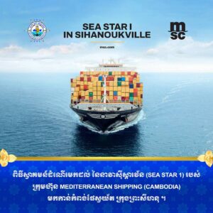 Sihanoukville Autonomous Port (PAS) : At 4 PM on Friday, 27th February 2026, at the venue of PAS Container Berth Number 8, Sihanoukville Autonomous Port organized a welcoming ceremony for the arrival of SEA STAR 1 Vessel of the Mediterranean Shipping (Cambodia) to PAS, presided over by Mr. Thay Rithy, Deputy Director-General in charge of Business, Representative of His Excellency Lou Kim Chhun, Delegate of the Royal Government of Cambodia in charge as Chairman and CEO of Sihanoukville Autonomous Port.